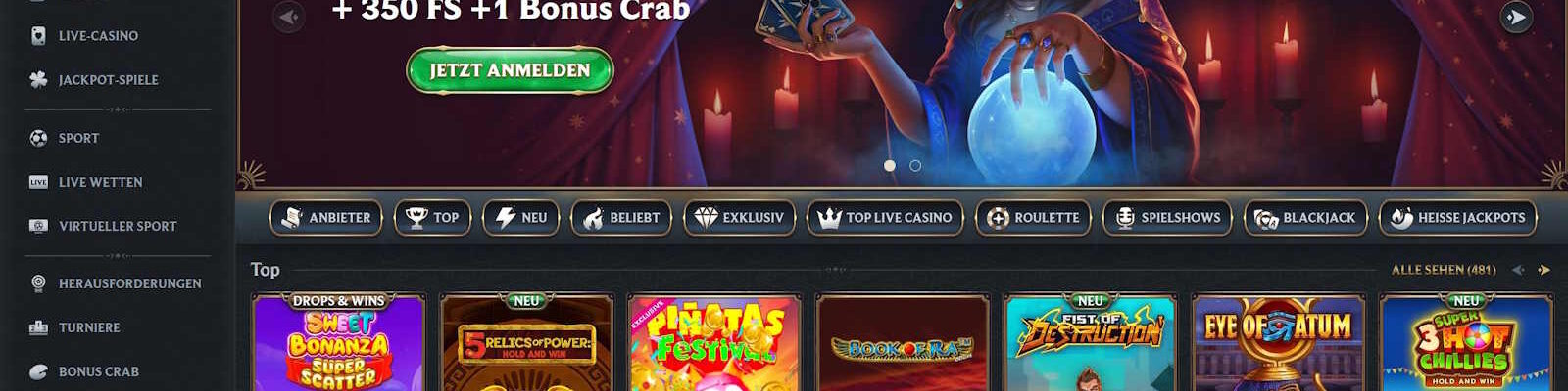 3000 € Bonus + 350 Freispiele + Bonus Crab