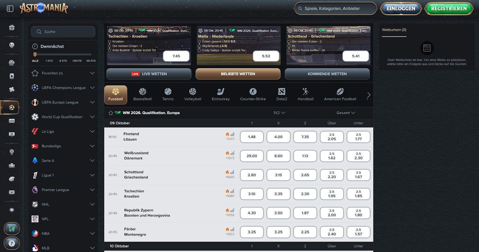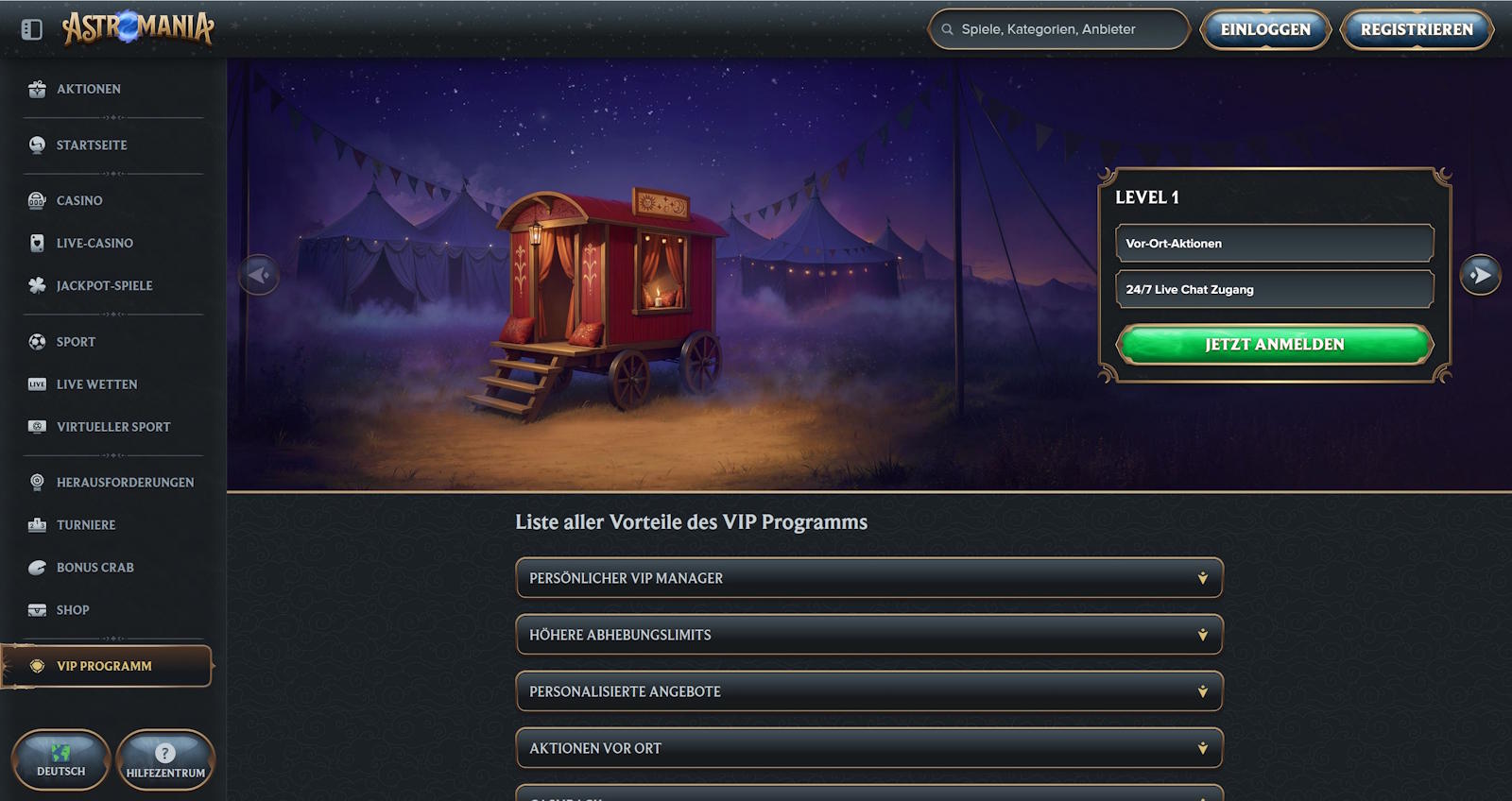 Alle wichtigen Infos zum AstroMania Online Casino in einer Übersicht.