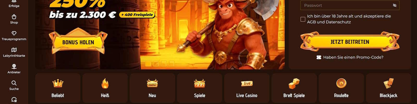 Laden Sie Ihr Guthaben mit einer Mindesteinzahlung von 20 € auf und sichern Sie sich den 250% Willkommensbonus bis 2300 € und Freispiele.