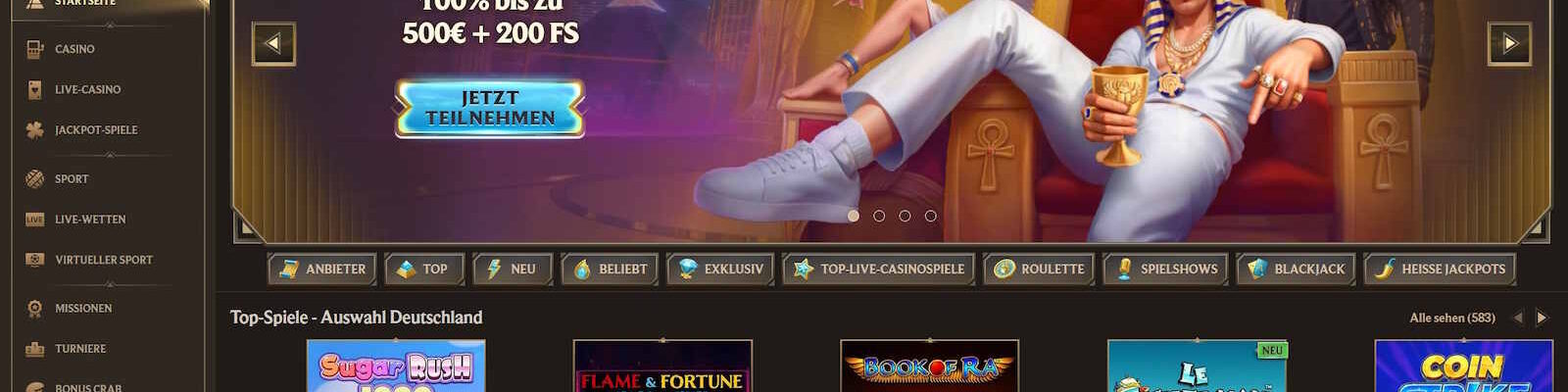 Laden Sie Ihr Guthaben mit einer Mindesteinzahlung von 20 € auf und sichern Sie sich den 100% Willkommensbonus bis 500 € und 200 Freispiele.